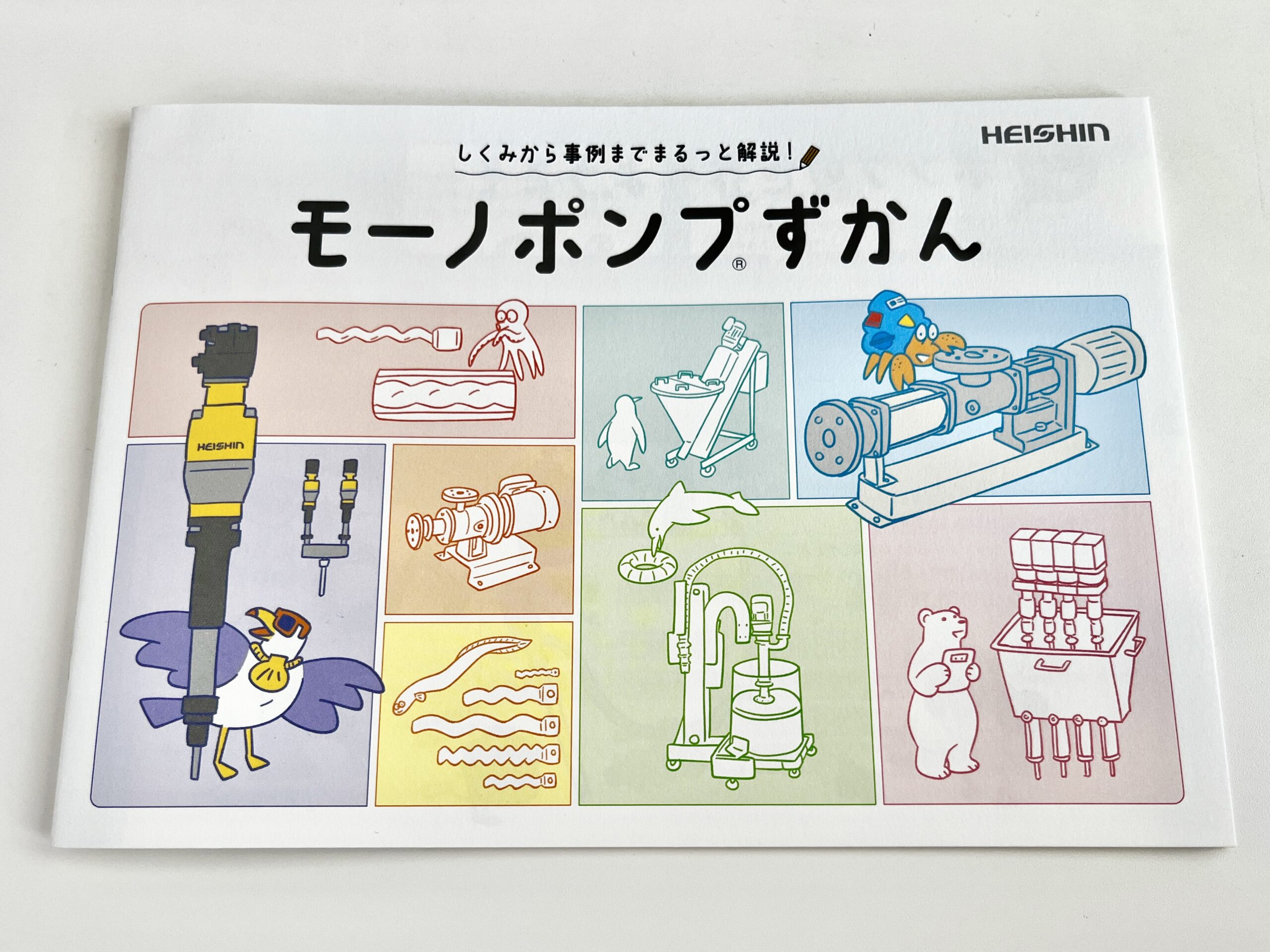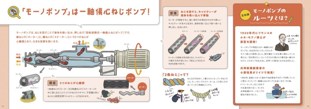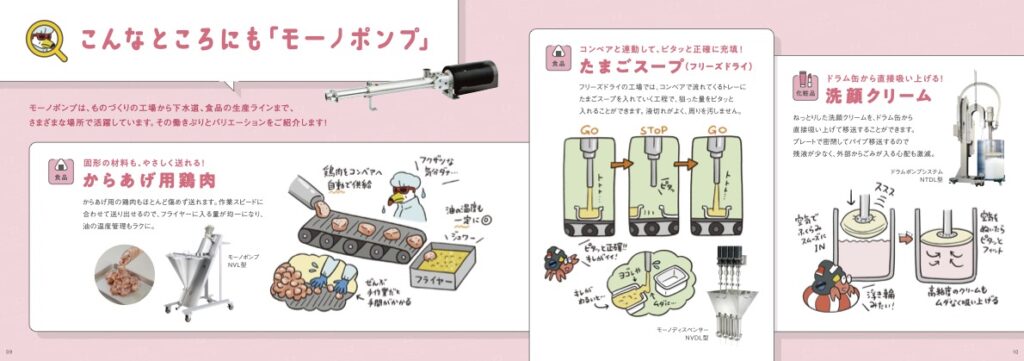 兵神装備株式会社の製品紹介冊子『モーノポンプずかん』のイラスト制作などを担当しました。